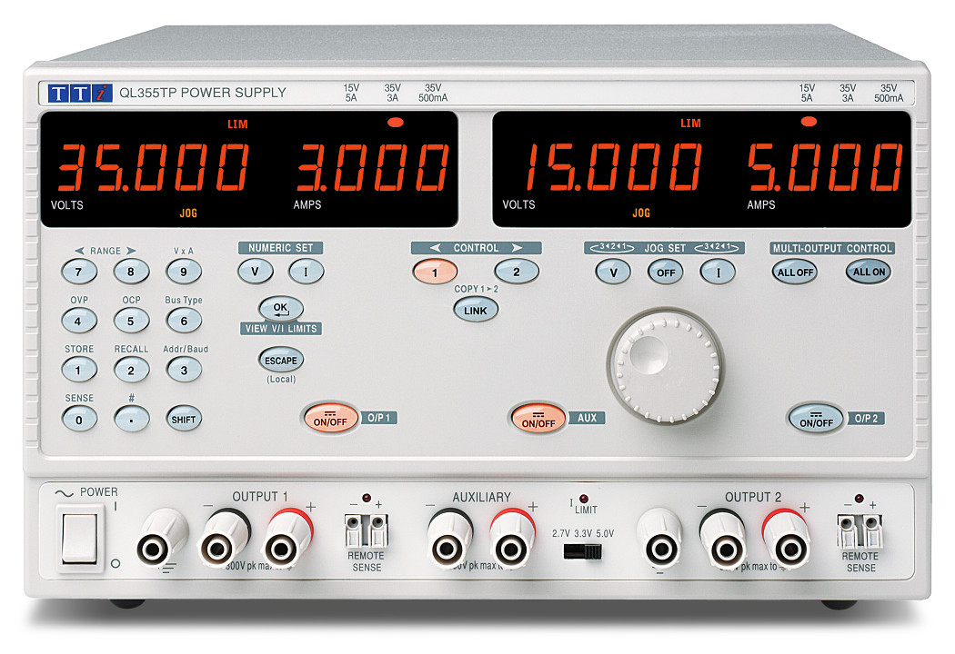 - Auxiliary output fully variable 1.00V to 6.00V at 3A with selectable voltage and current metering (T models)
